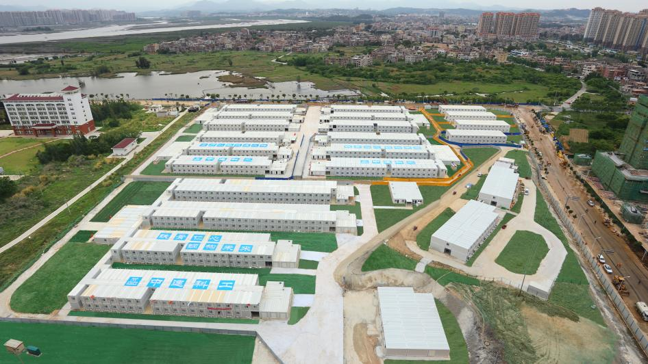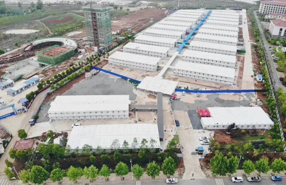 项目采用1737个成品集装箱板房拼装,建筑面积3.12万平方米。隔离区共有22栋隔离单元楼,设有1056间隔离房间,1100张床位,用于密接、次密接人员隔离观察。目前项目已建成。